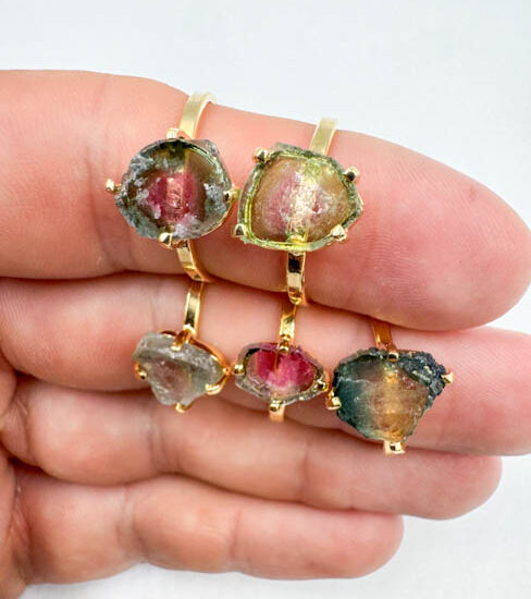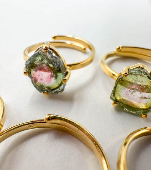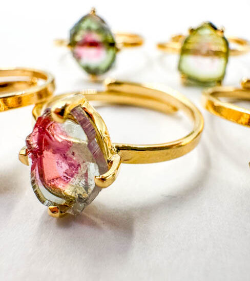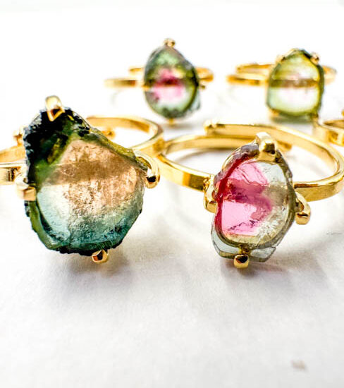 Watermelon Tourmaline Rings (Gold Plated Sterling Silver)